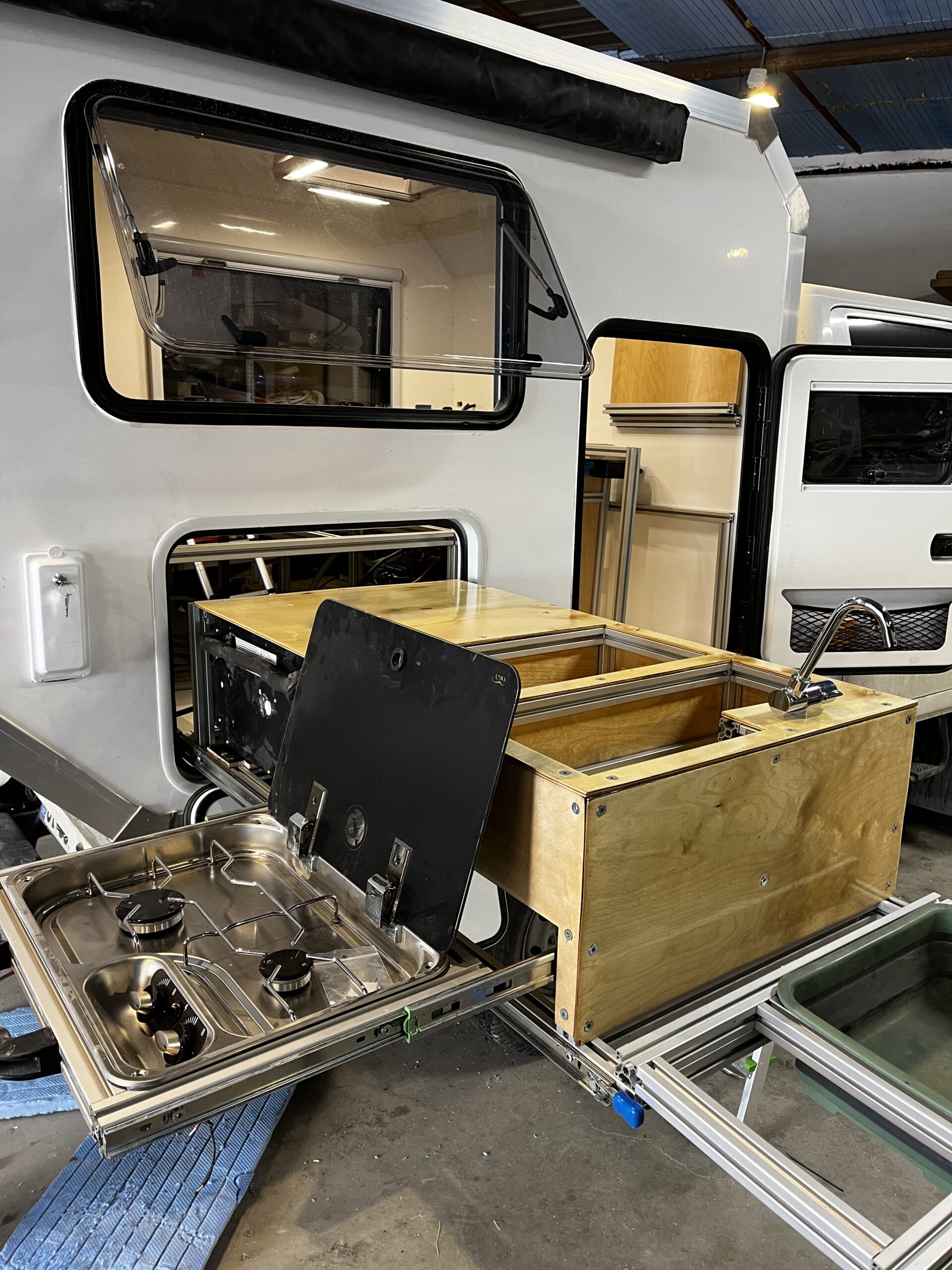 The cabin has ample storage space, a full functional outdoor kitchen with a fridge, stove and running water, and everything you need for those moments of relaxation after a long day of exploring.If there are more than two in your party, simply add the roof top tent on top – and get on the road with up to 4/5 persons.