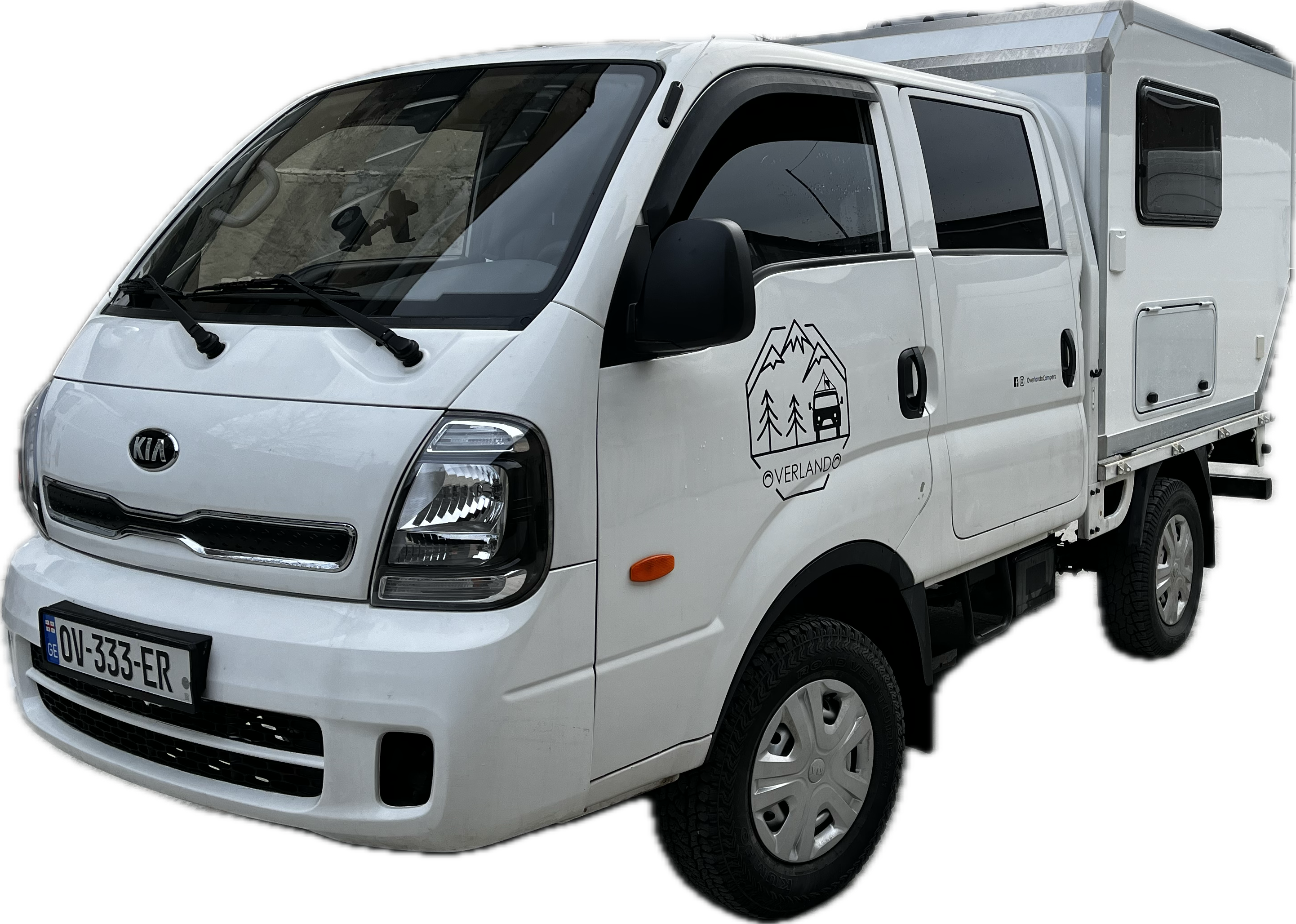 The KIA Bongo itself is a versatile and robust workhorse with a powerful engine, four-wheel drive and low-gears range – making it the ideal companion to tackle the diverse landscapes of Georgia, from the high mountains to the lush forests. It is lightweight and compact, yet feels remarkably spacious from inside, featuring modern comforts such as air conditioning, a multimedia system and various safety features.
